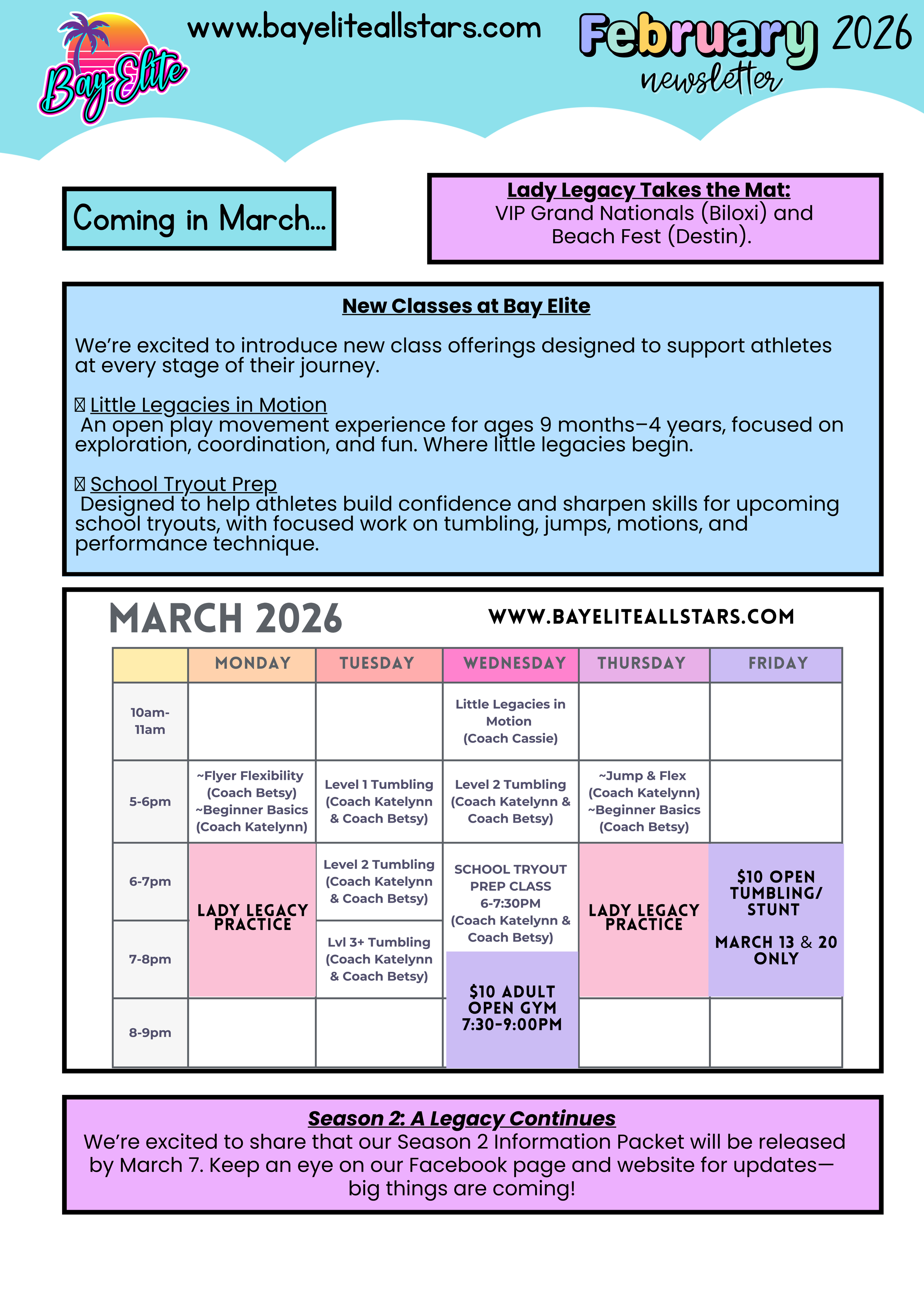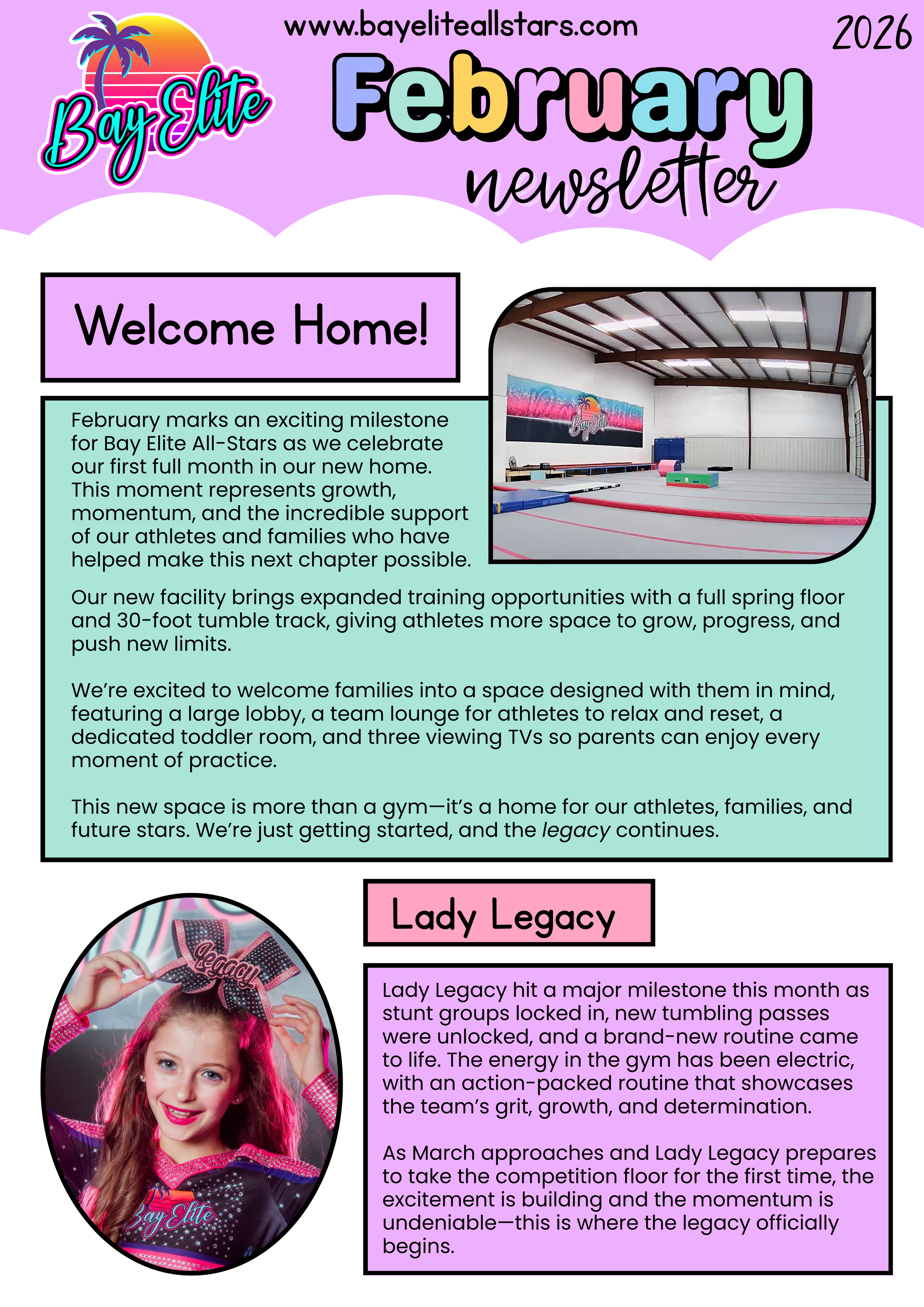The first weekend in March was an unforgettable moment for Bay Elite as Lady Legacy took the mat for the very first time and delivered an incredible performance. The team earned 1st Place, Hit Zero, High Point, and brought home championship rings, marking an amazing start to their competitive season. Their performance also earned them a Paid Bid to the World Wide D2 Championship and a Gold Bid to the One Prime Finals. We are beyond proud of the hard work, determination, and heart these athletes showed on the mat — the legacy has truly begun!